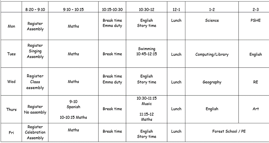 Please see below our weekly timetable, with a breakdown of which lessons we have when.